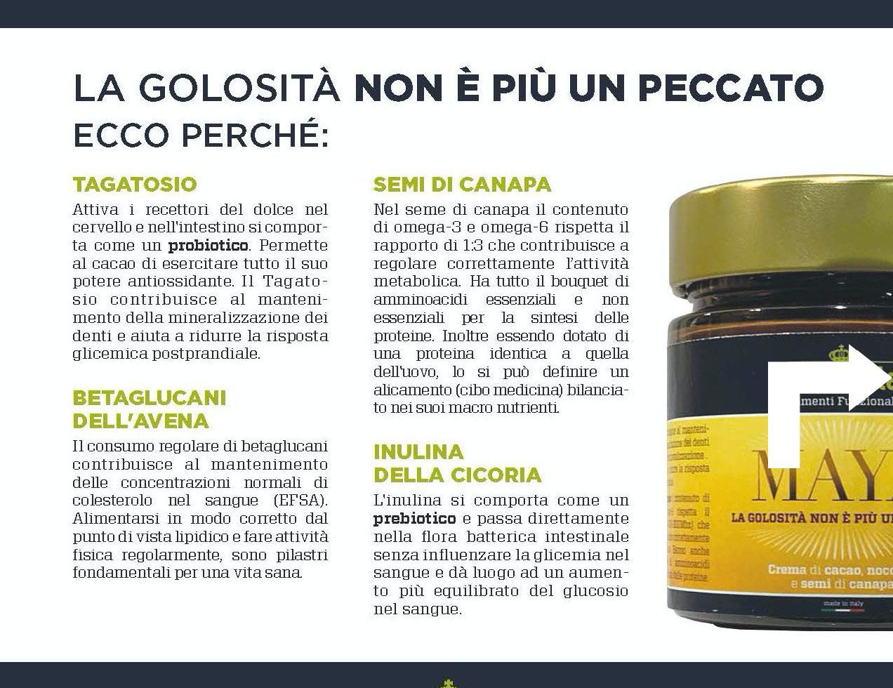 con cacao, nocciole, semi di canapa, d-tagatosio, acido alfa lipoico, flavoni del tè verde